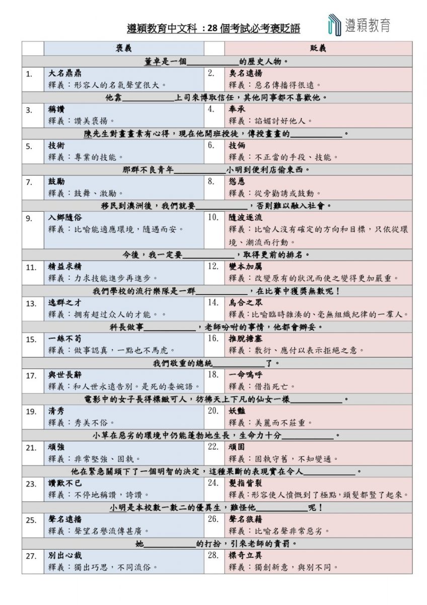 【遵穎學堂】-28個考試必考褒貶語(大鄭Sir)